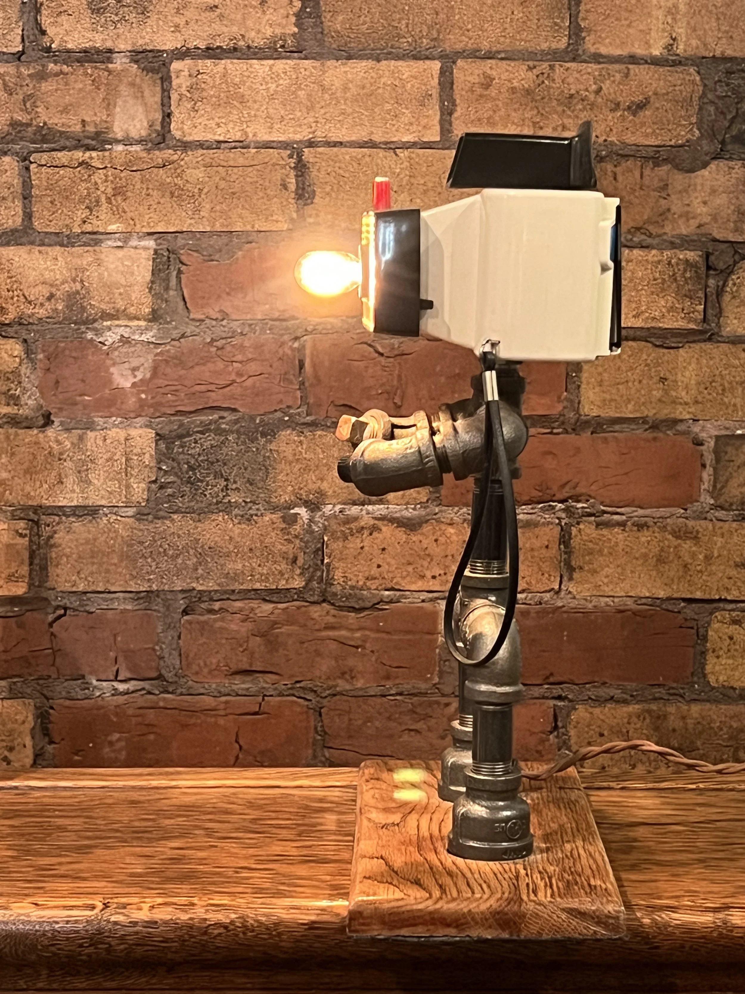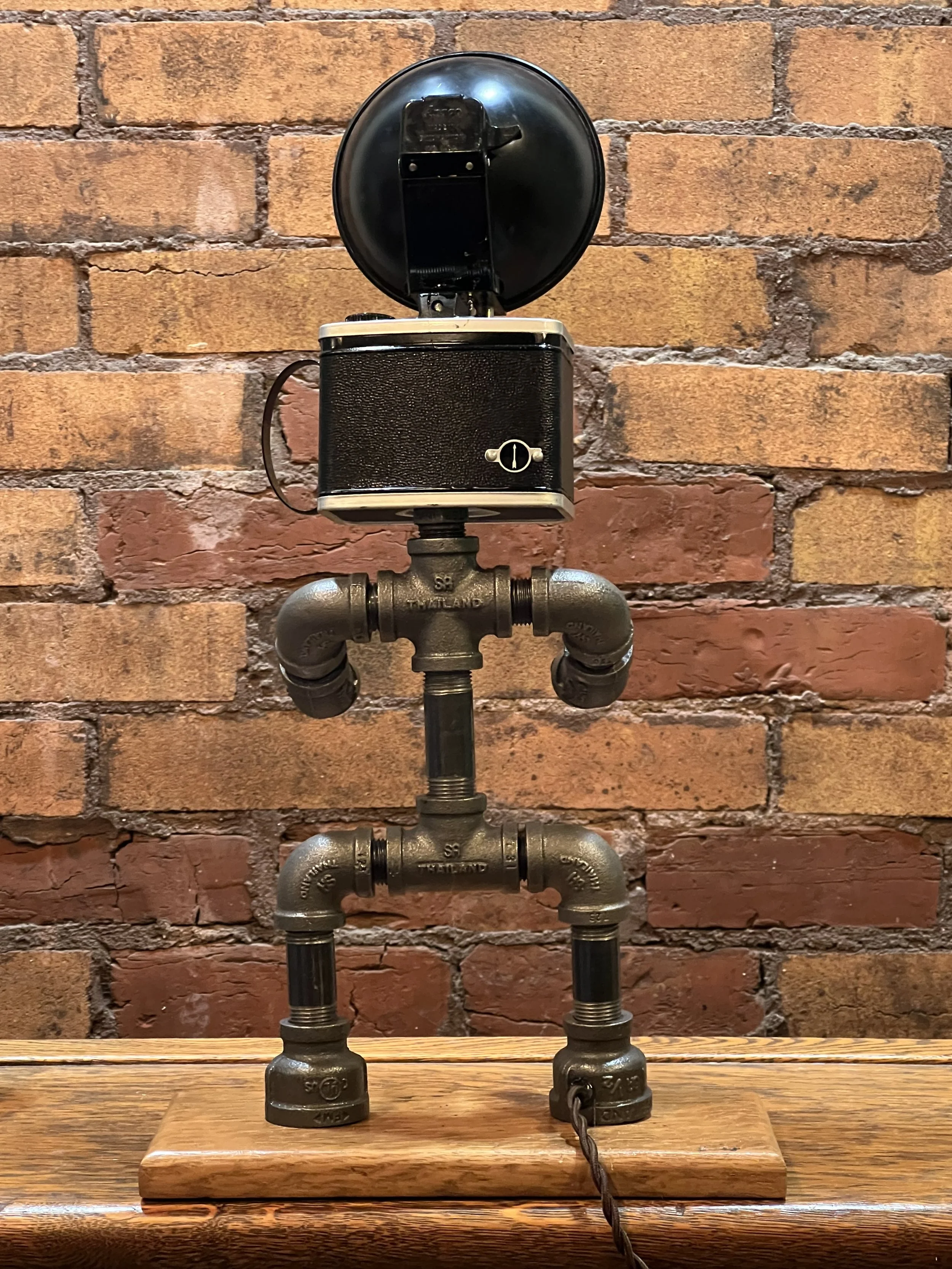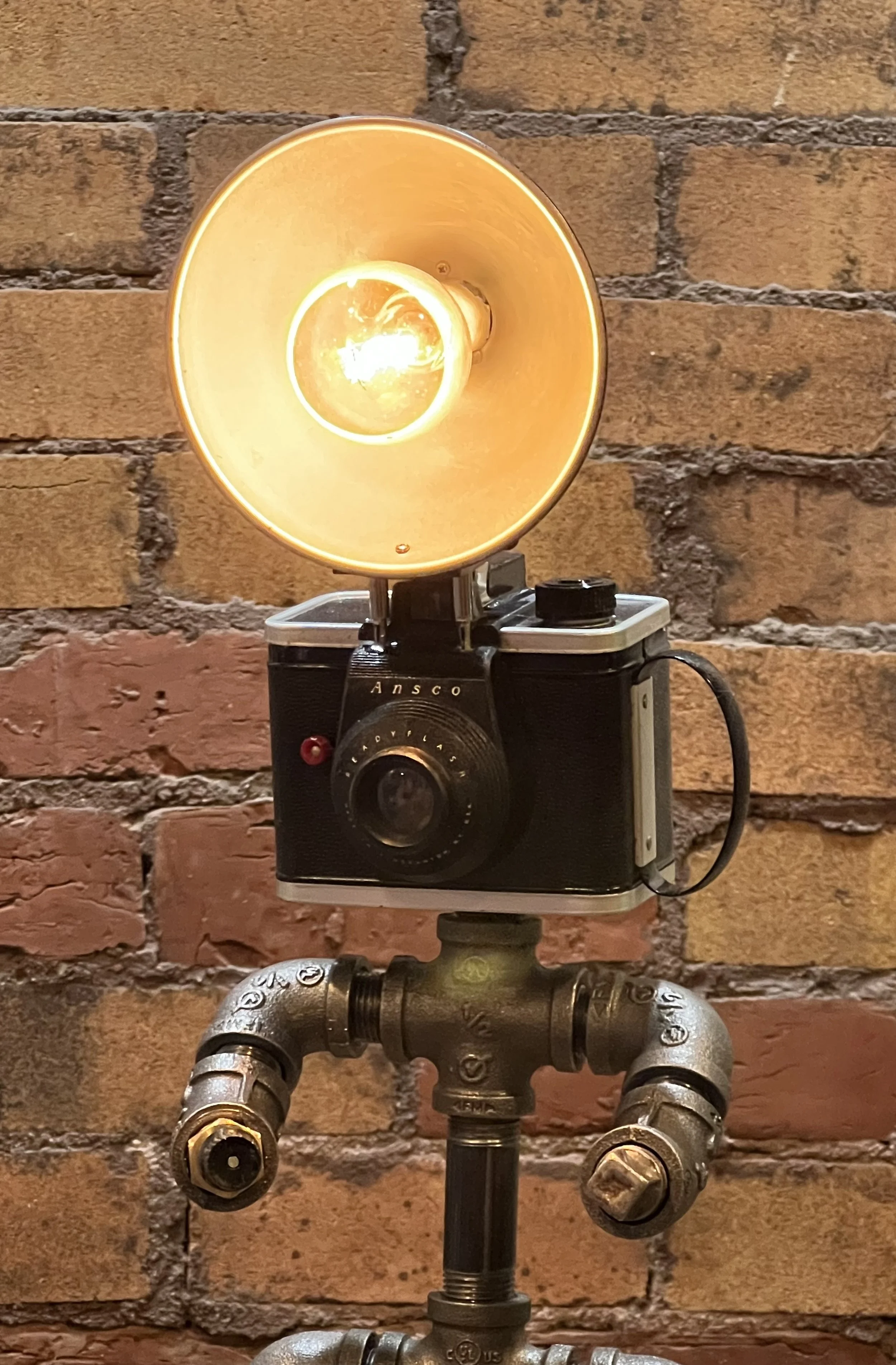 Welcome to The Vintage Addict! I create unique neo-futuristic and steampunk lamps using vintage Kodak and Polaroid cameras, glass insulators, antique heaters, and other retro pieces. Each handmade lamp is a functional, one-of-a-kind design made from authentic vintage materials, assembled with industrial-grade UL listed components for safety and quality.